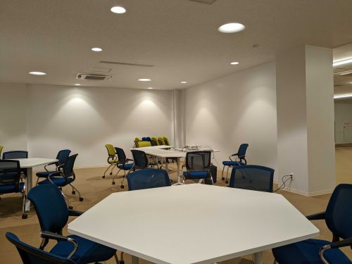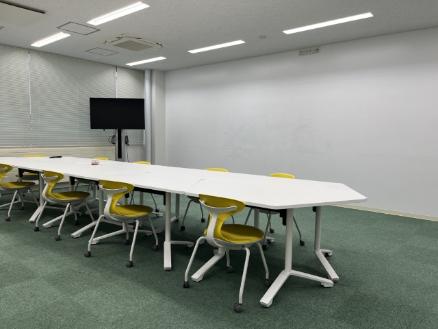 - 可動テーブル席とホワイトボード・スクリーン兼用壁のスペースです。