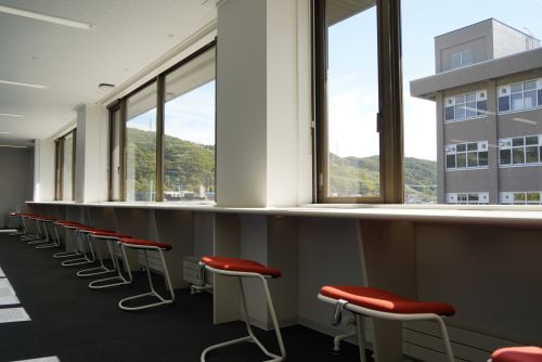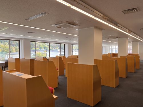 - 「静かに個人で勉強するためのスペース」です。キャレルデスク・カウンター席などを用意しています。