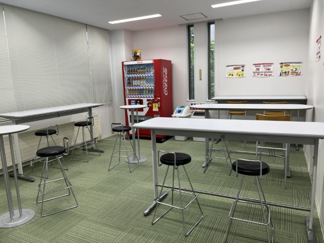 - 飲み物の自動販売機があります。パン・おにぎりなどの軽食を食べることが出来ます。