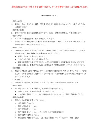 - 個人で静かに勉強するための一人用の部屋です。2Fの閲覧席よりもさらに集中したい時などにご利用ください。