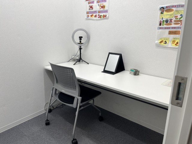 - Web面接やWeb会議などで利用するための一人用の部屋です。各自の持ち込みPCをご利用いただけます。